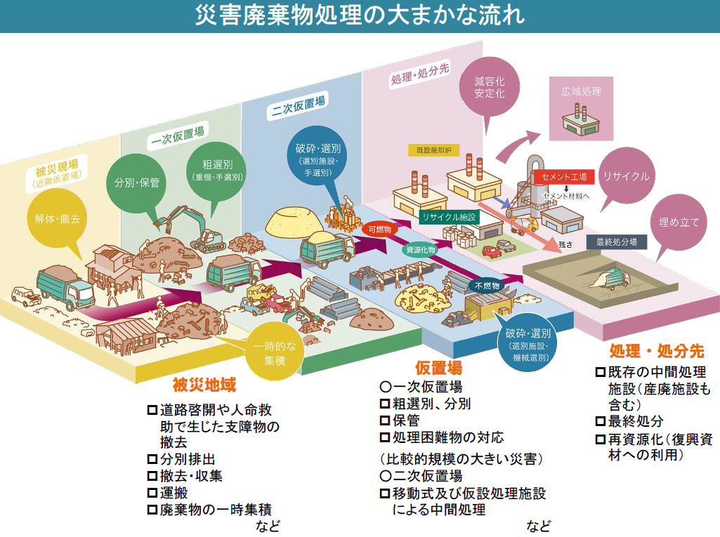 災害で被災者が最も望むことは、元の生活の早期復旧であることに対して、瓦礫処理の遅れ(1次もしくは2次仮置き場への分別業務)によって、復興を阻んでいるのが現状です。